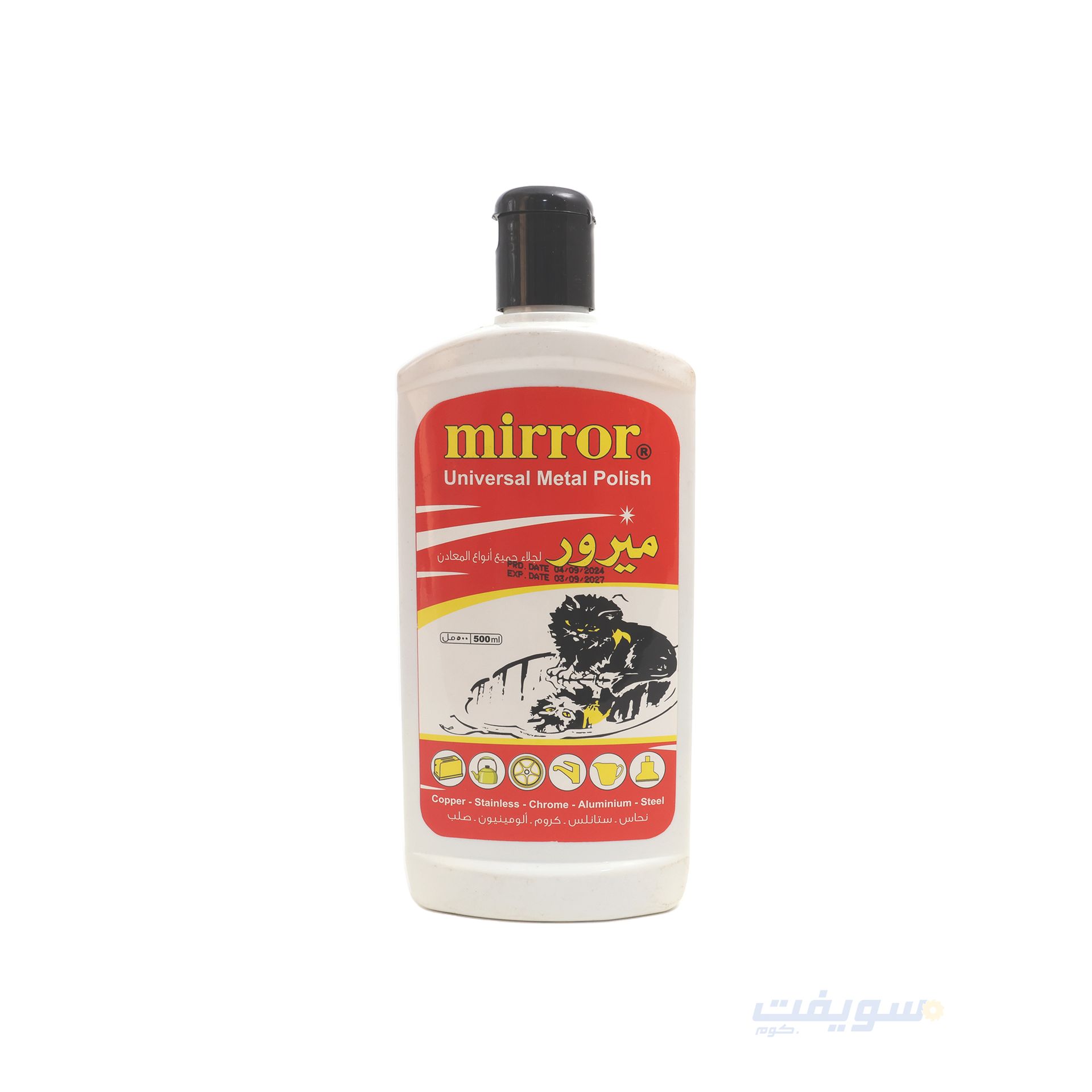 والبرونز والزنك والألمنيوم والفولاذ والفولاذ المقاوم للصدأ. يحتوي على مركب خاص مقاوم للماء ويوفر حماية طويلة الأمد من الصدأ، ويحافظ على لمعان الأسطح كالمرآة. الحجم: ٢٥٠ مل