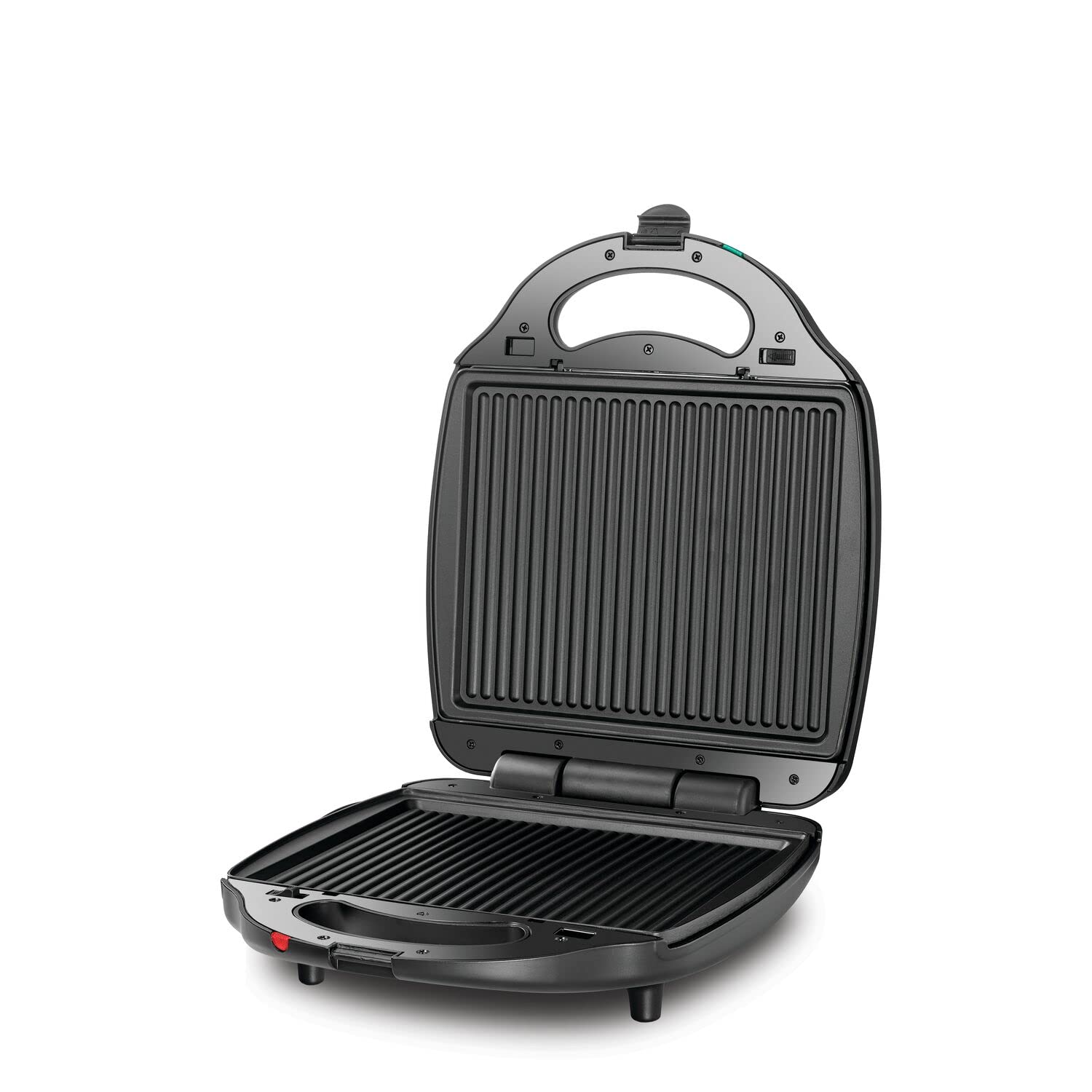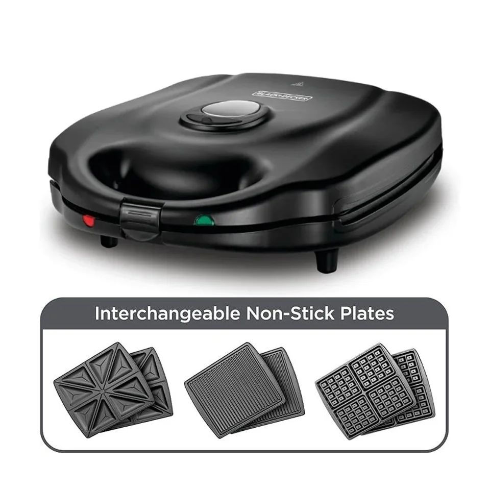الطاقة 1400 وات مثالية لتحضير السندويشات والشواء والوافل. لوحات ساندويش وشواء ووافل قابلة للتبديل لتنوع إعدادات تحصير الوجبات. شكل مدمج مع تخزين للسلك لحفظ المساحة بالتخزين الرأسي. وضع شواء مسطح 180 درجة مع منطقة طهي كبيرة لوظائف الشواء. لوحات متعددة الوظائف مغطاة بمادة غير قابلة للالتصاق لمنع الطعام من الالتصاق. مؤشر ضوئي للتشغيل وجاهزية الطهي لسهولة التشغيل. مشبك قفل لطهي متساوٍ وتشغيل آمن. تصميم اللوحات القابلة للإزالة لتنظيف سهل في غسالة الأطباق. أقدام مانعة للانزلاق لاستقرار التشغيل.